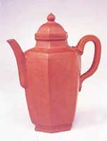 不久前,紫砂陶学界有一些学者提出一个新颖的观点,即把紫砂茗壶的等级类别进行了初步的划分和归属。第一类──具有传统的文人审美风格,讲究内在的文化底蕴,提倡素面素心,清雅宜人,或在壶体上镌刻题铭,切壶、切茶、切景、诗、书、画融于一壶,充满了浓郁的书卷气,称为「文人壶」。第二类──具有热烈鲜艳、明丽繁缛的装饰效果,常用红、黄、蓝、绿、黑等彩漆或泥料绘制山水人物、草木虫鱼,或者镶金包银做为辅助装饰,充满自然民俗的市民生活气息,称为「市民壶」或者「民间壶」。第三类──将砂壶进行拋光处理,镶以金口、金流、金柄,有时也用铜锡类金属,风格脱离中国文化传统,迎合西亚及欧洲人的审美情趣,带有明显的异邦风貌,称为「外销壶」。壶是如此,其它器具亦然。我们很赞成这种按等级类别的归纳法,但仍不很全面,建议再补充进精工细作、典雅优美的宫廷壶这一类,因为库藏品中有许多表现当时最高工艺成就的紫砂器,不惜工本,盖世超群,是道道地地的御用紫砂器。此类制品除了带有浓厚的书卷气以外,还有富贵华美的皇家气派,社会上不流通、不得见,其制作水准与官窑一样代表了当时紫砂制作的最高成就,这一点是可以肯定的。然而,进呈宫廷或宫廷向宜兴定烧的紫砂制品由于受到最高统治阶层审美意趣的局限性,不能充分发挥艺术匠师和设计文人的创造才华,很大程度的禁锢了他们的艺术想象力,而使制品过于拘谨、规范,出现了程序化的格局。但就砂质的精炼和工艺手法以及技巧装饰上看,都较之其它之类的制品更胜一筹,绝非一般「文人壶」、「民间壶」所能比拟的。由于此类制品外界流散较少,因此对于宫廷茗壶及同类紫砂器的深入研究,应当是当今紫砂研究领域的新课题。 |